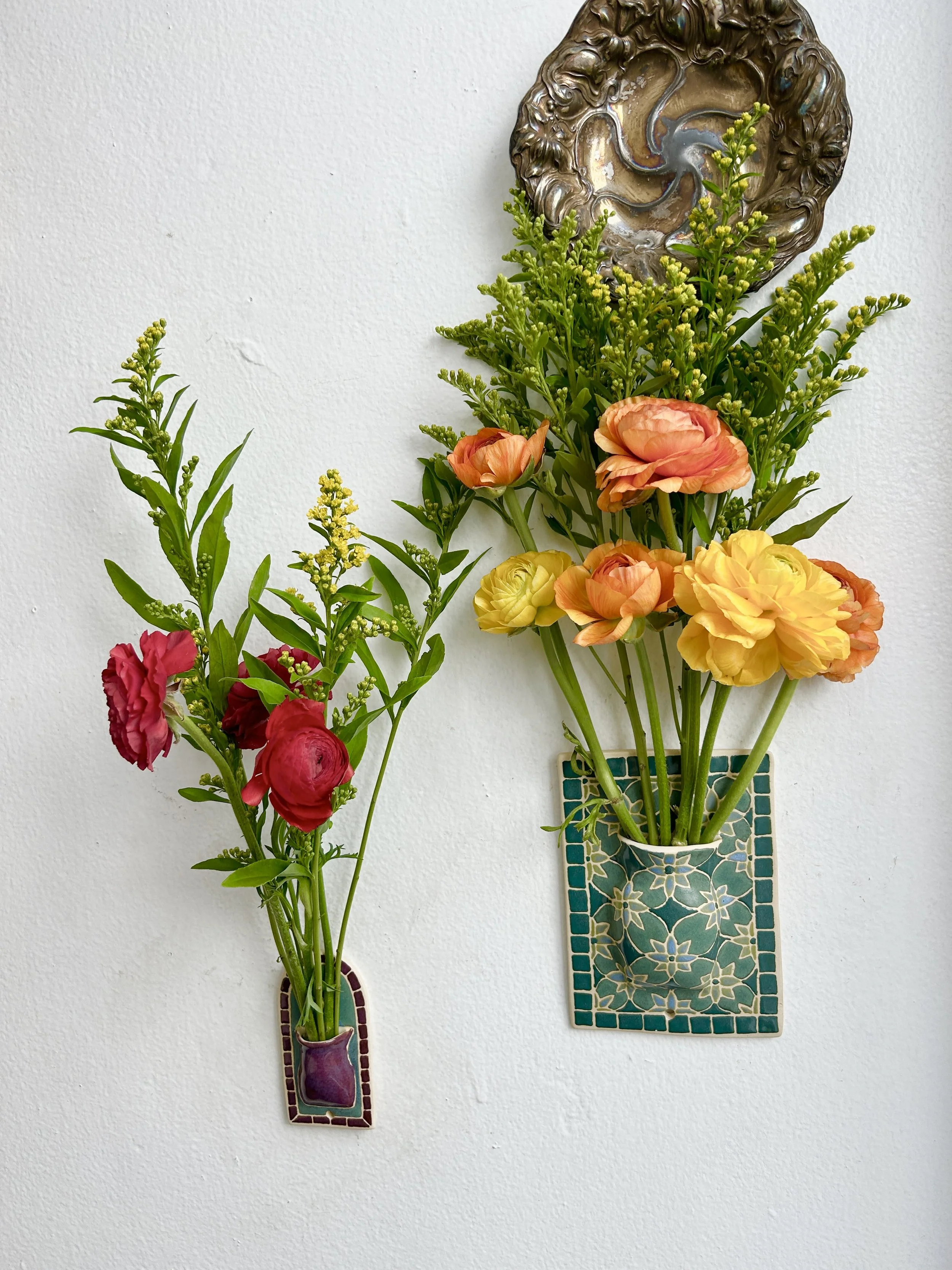 All vessels are sculpted by hand, by Saint, in Chinatown Los Angeles. Each vessel is made using the hand-building technique which allows them to hang independently on the wall, as opposed to resting on a surface. Saint explores the line between art and functionality and, in many pieces, plays with the interdependence between two or more bodies. Each piece is hand painted, and no two are exactly the same.